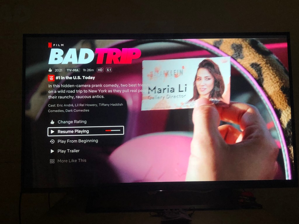 Very hilarious movie that can save you laughing thinking laughter is just the best medicine! If you are into a slapstick style comedy but with real actors filming in reality without telling people they are filming a movie this movie is for you! Reminds me of Bad Grandpa the way the main actors are in situations that just have them “Oh! Sir, are you alright?” but had me laughing, and laughing, and laughing again! My girlfriend was in and out of the room preparing lunch while we were watching so I honestly started it over twice and nothing re-watched bothers me. Actually has me laughing harder and harder each time! Tiffany Haddish stars as “Trina” who is the sister to “Bud”. Bud works at a pawn sort of store. Eric Andre plays Chris who works at a Smoothie store helping a customer out that he happened to have a crush on in high school with. Chris receiving a business card from “Maria Li” that she lives in New York with a art gallery is gung ho in love aspired to do anything at all costs to get to New York. Meanwhile, Chris lives in Florida and has no car. Bud’s sister has a car, but Bud is supposed to be keeping her car in perfect shape in the parking garage he has been paying for daily while she is in jail for breaking house arrest. Trina breaks out of jail and realizes her car was stolen by her brother and his best friend to get to New York for Chris’ “true love”…or so he thinks. The hijinks that happen are just what I can’t tell you! Being the #1 Netflix film of the week I just recommend! You could be laughing yourself into a next positive awakening!!!!!! Watch Bad Trip today!!!!!!