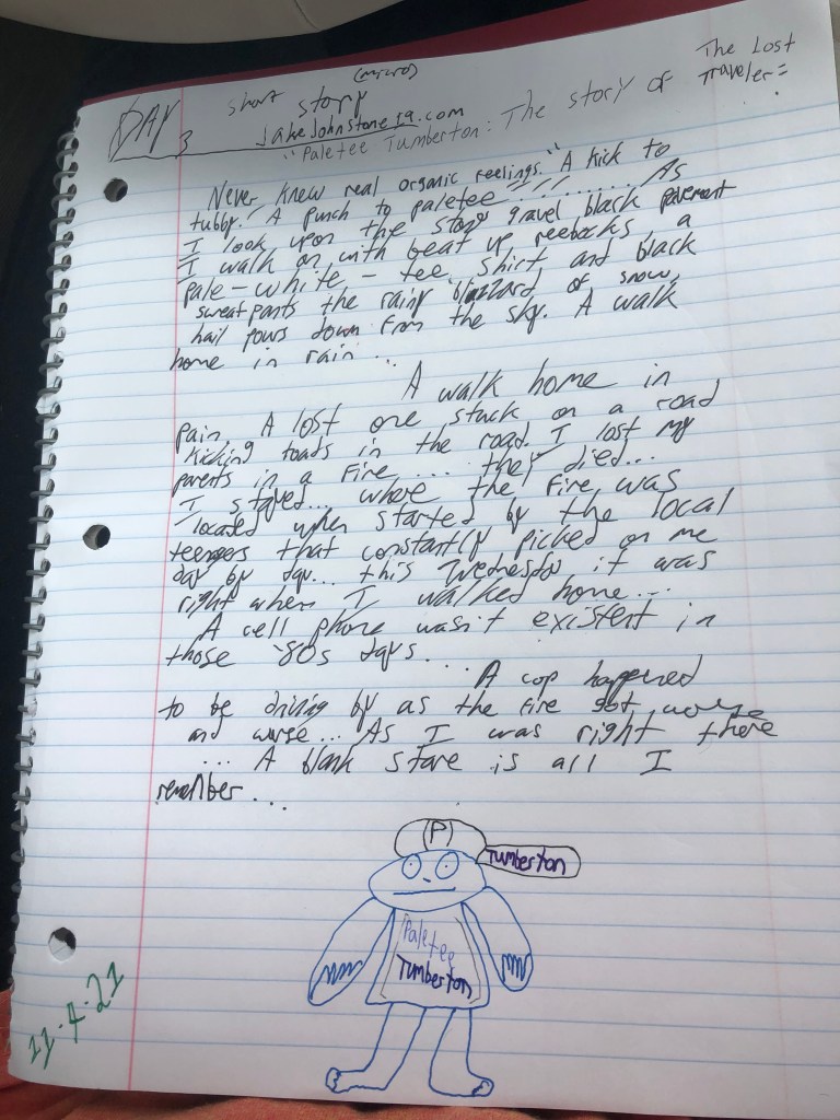 I never knew real organic feelings. “A kick to tubby! A punch to paletee!!”……As I look upon the Stoney gravel black pavement I walk on with beat-up reeboks, a pale-white-tee shirt, and black sweatpants; the rainy blizzard of hail snow pours down from the sky. A walk home in the rain…