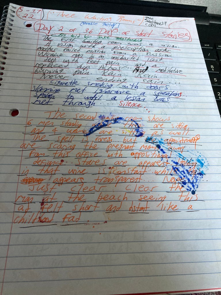 ” The first waiting room was a vision. A vision with a prescription after another failed mission from a Russian Ukraine man in an uncharted land deep with feet pain … and a replaced hip. Aches/ … And meditative burning pain. Rain. Rain … Never-ending rain … Cigarette smoking with doors slamming met ignorance a speaking … Spoken to until a lesson was met through … silence … “