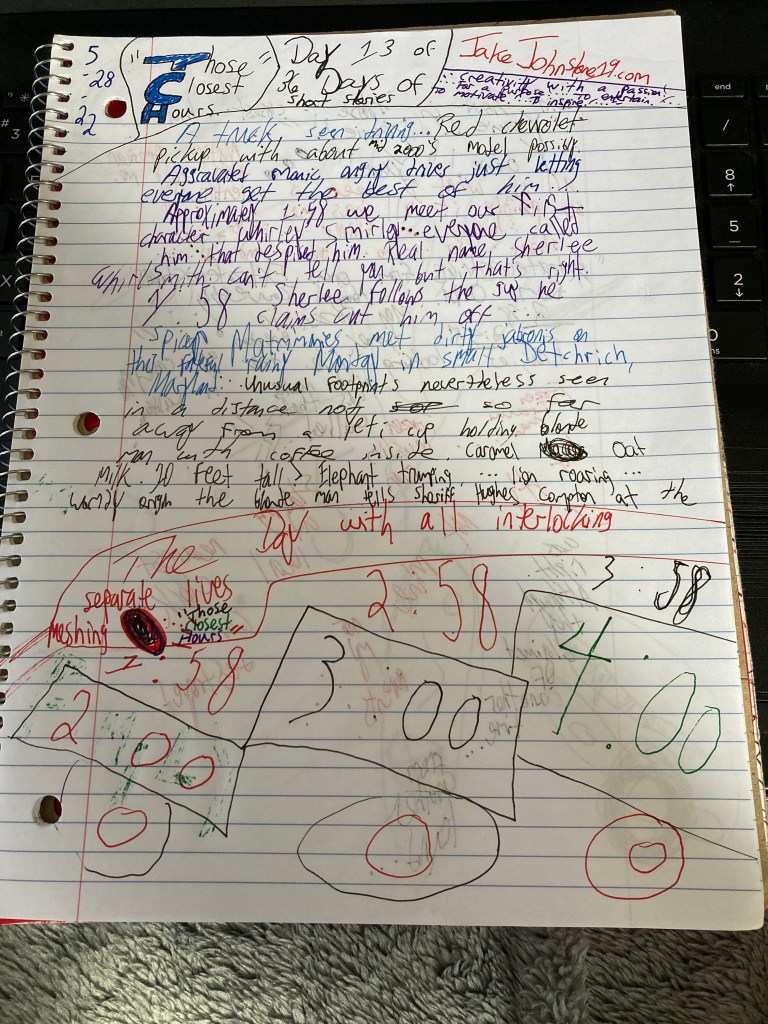 ” A truck was seen driving … Red Chevrolet pickup with about mid-2000’s model possibly. The aggravated manic angry driver just lets everyone get the best of him … At Approximately 1:58 we meet our first character. Whirley Smirley … everyone called him … that despised him. Real name Sherlee Whirlsmith. Can’t tell you, but that’s right. 1:58 Sherlee follows the guy he claims cut him off … Spicer Matrimonies met dirty jabronis on this fateful rainy Monday in small Detchrich, Maryland … Unusual footprints were nevertheless seen in a distance not so far away from a Yeti cup holding blonde man with coffee inside. Caramel Oat Milk. 10 feet tall? Elephant trumping … lion roaring … Worldy origin the blonde man tells Sheriff Hughes Compton at the day with all the interlocking separate lives mashing … next hour in those … closest … hours … ” Yowie!! Yowie!! ” …