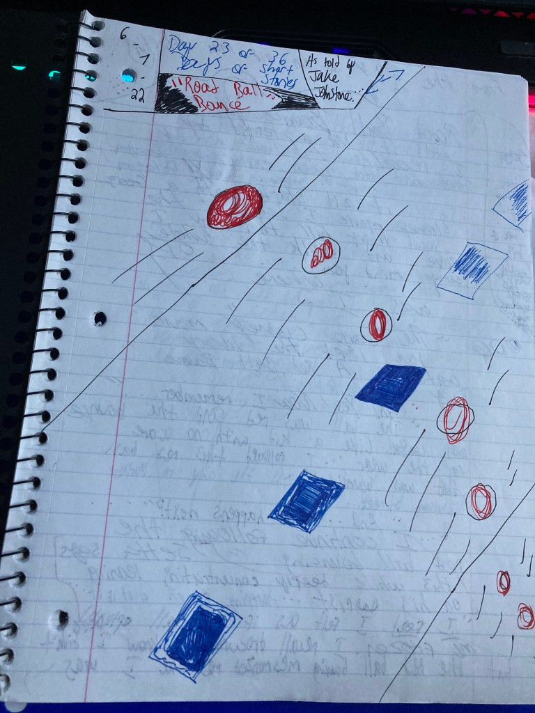” Road Ball Bounce Day I call it! Not a terrific day I recall it! Just a day that had too much malarkey. Bologna! Too much nonsense I tell ya! Bologna! So… it all started with a George Clooney movie I saw at the local library hall that day. I leave and walk the whole way mind you … OK … Where was I? … “