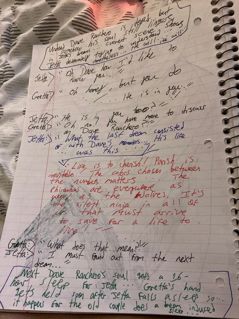 [ Undead Dave Ranchero is dead, but … somehow his soul still lingers in Jetta’s dreams … current scene shows Jetta desperately trying to understand … nonetheless … He will … He will … ]