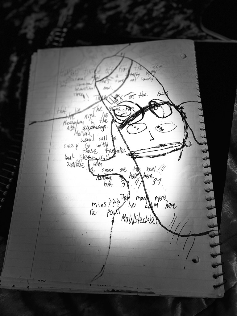 !! Three e’s on the faces that lie. The snores from the nigh. No pleasantries in the night awakenings. Mortals would call me crazy for writing these frustrations but sleep isn’t available when the snores are the local!!! Nothing to have here but 37!!! … 37 … That many more mins??? No calm here for Paul Maulsteckler. !!!!!!! … …
