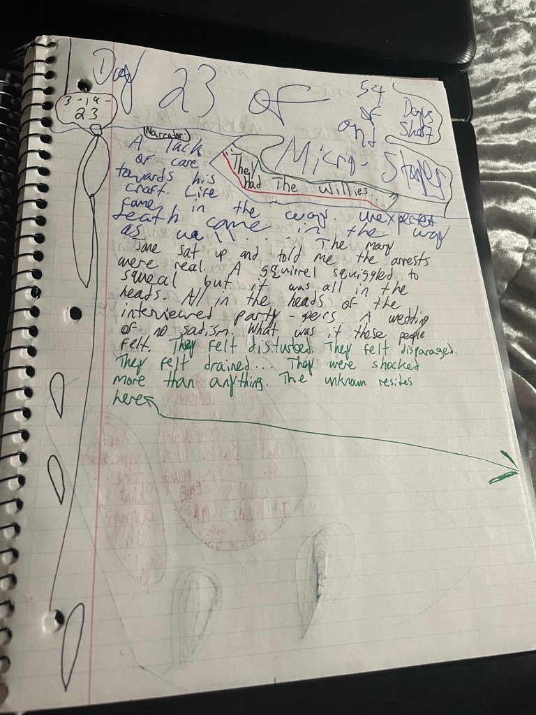 ” A lack of care towards his craft. Life came in the way. Unexpected death came in the way as well… Mary Jane sat up and told me the arrests were real. A squirrel squiggled to squeal but it was all in the heads. All in the heads of the interviewed party-goers. A wedding of no sadism. What was it these people felt? They felt disturbed. They felt disparaged. They felt drained … They were shocked more than anything. The unknown resides here … “