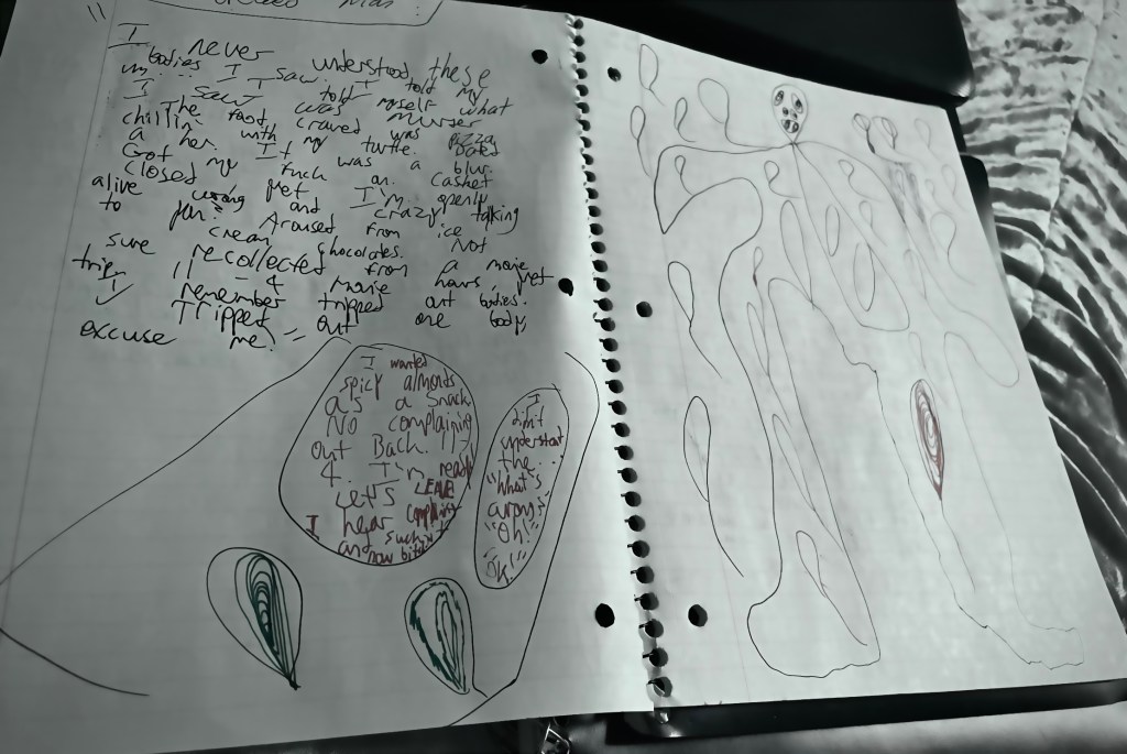” I never understood these bodies I saw. I told myself um … I told myself what I saw was murder. The food craved was pizza chillin’ with my turtle. Dated a her. It was a blur. I got my groove on. Casket closed, yet I’m openly alive wrong, and crazy talking to you? Aroused from ice cream chocolates. Not sure recollected from a movie trip. 11-4 were the movie hours, yet I remember tripping out bodies. Tripped out one body, excuse me! ”